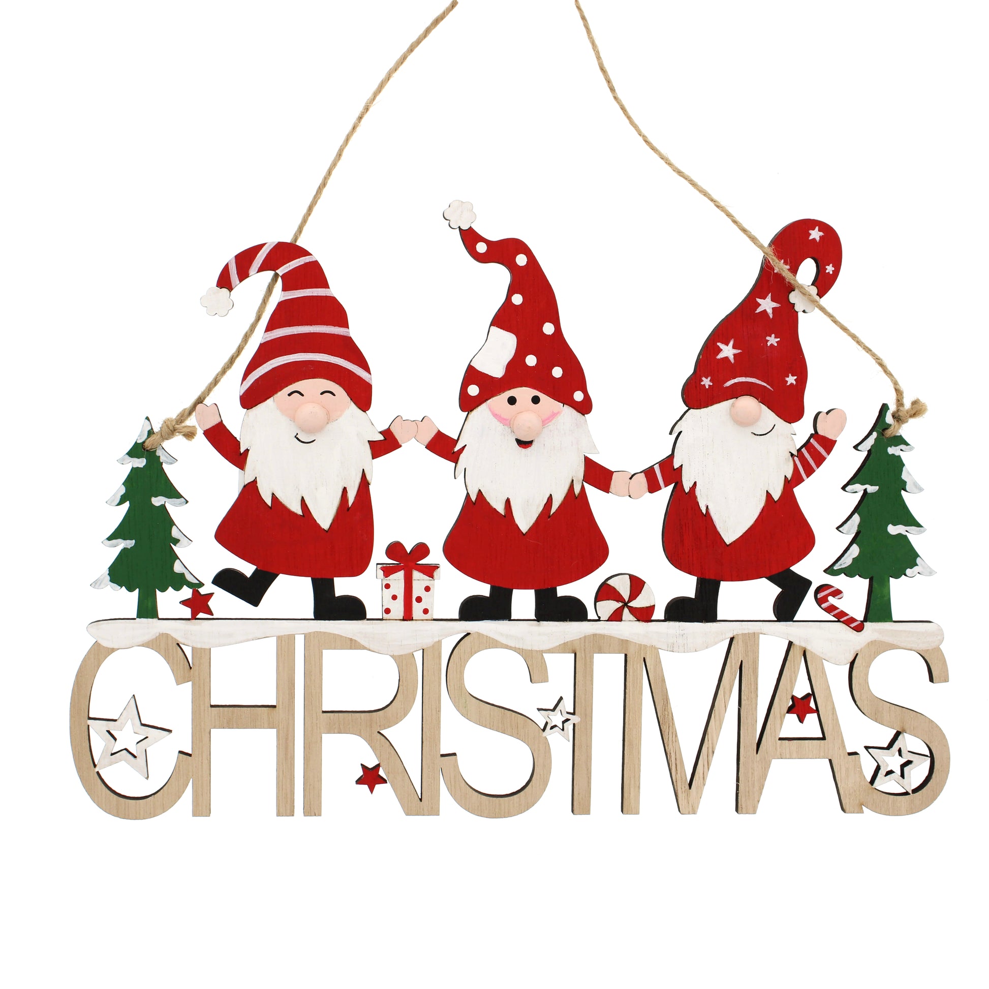 35cm hanging wooden Christmas sign with a trio of Gonks.