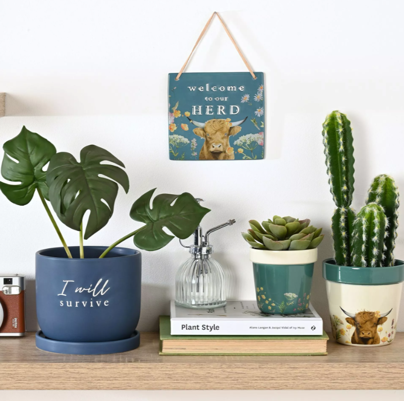 Welcome to the Country Living collection; a range of rustic gifts, home and garden accessories designed to connect you with nature. Add rustic charm to any home with the Country Living "Welcome To Our Herd" ceramic plaque. Featuring a friendly brown Highland cow surrounded by colourful flowers and greenery, this sign warmly greets all who enter.