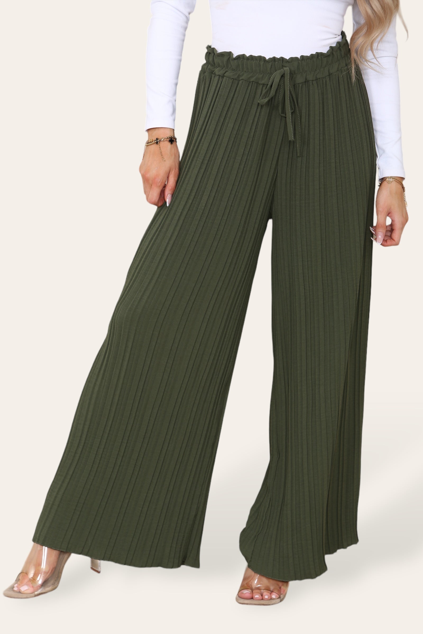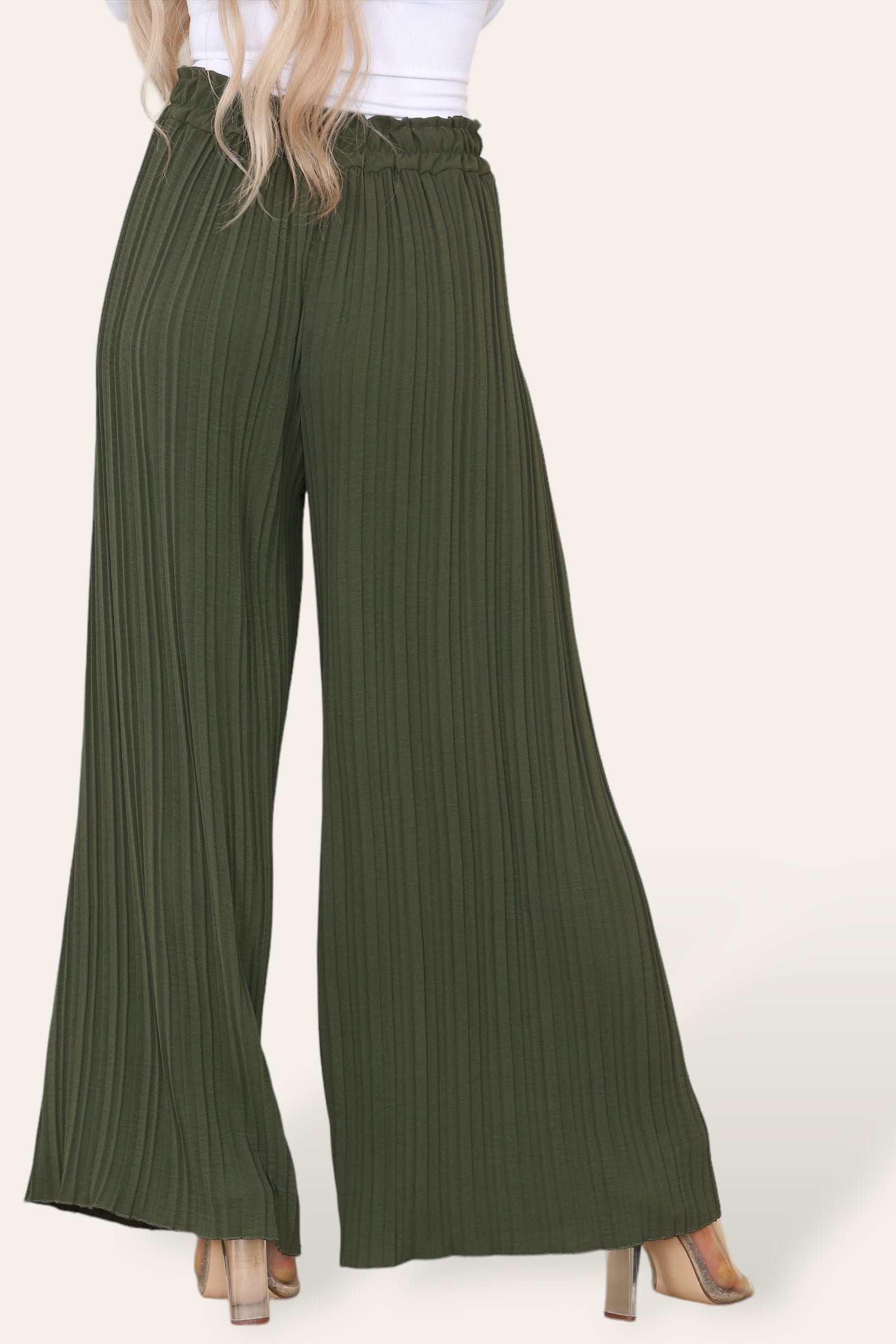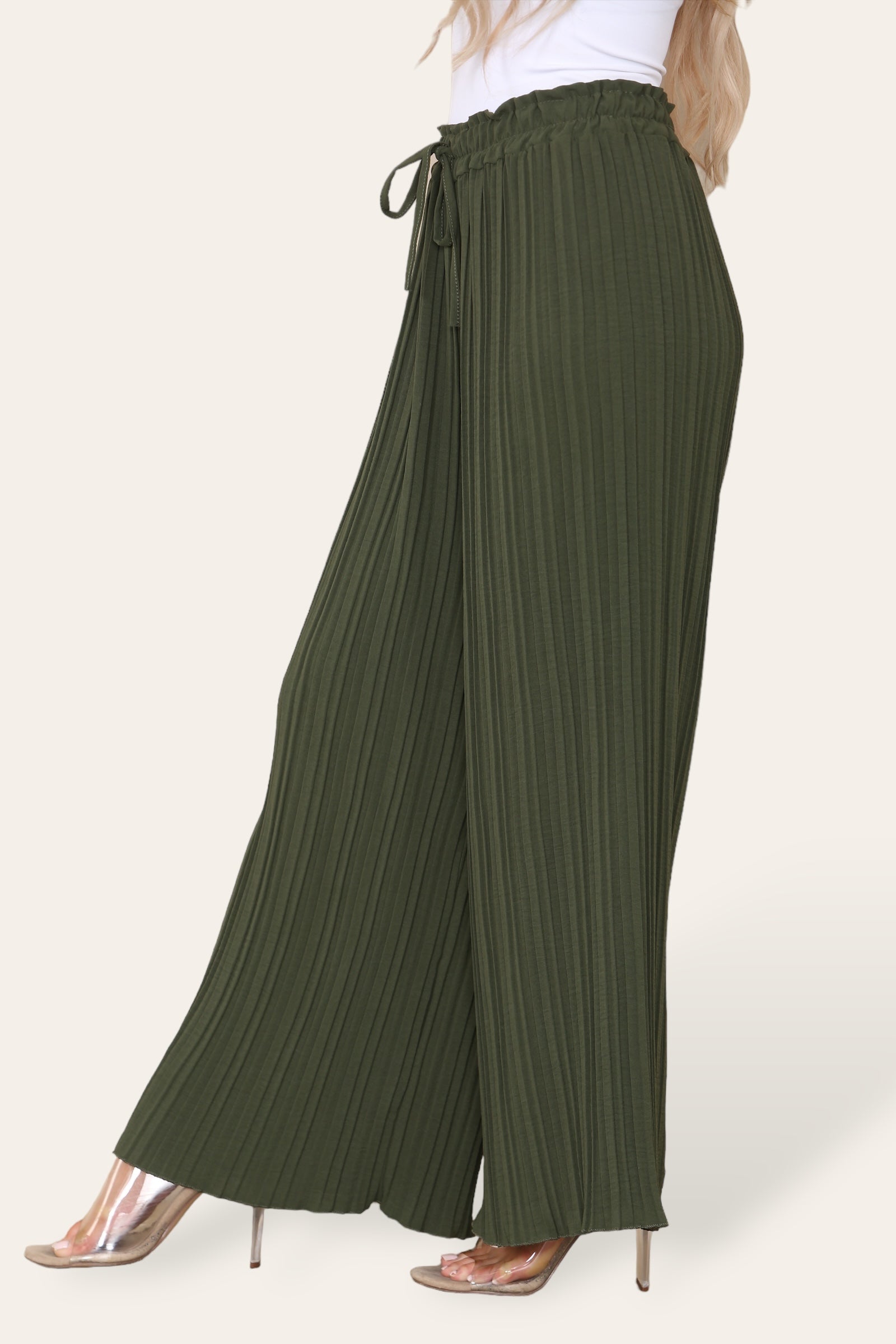 Step into style with our Wide Leg Plissé Pleated Trousers in Khaki. Featuring an elasticated waist and elegant pleats, they offer comfort with a chic, flowy silhouette. One size fits UK 8–18 — perfect for dressing up or down with ease.