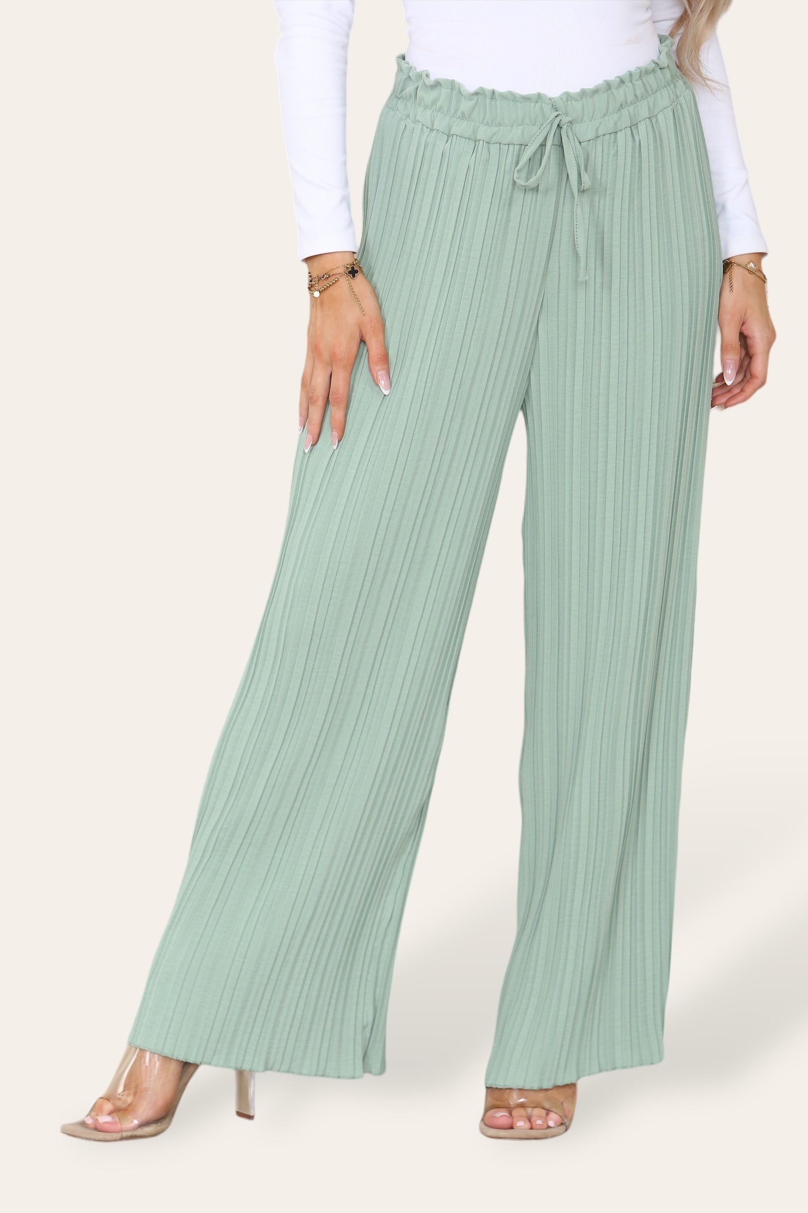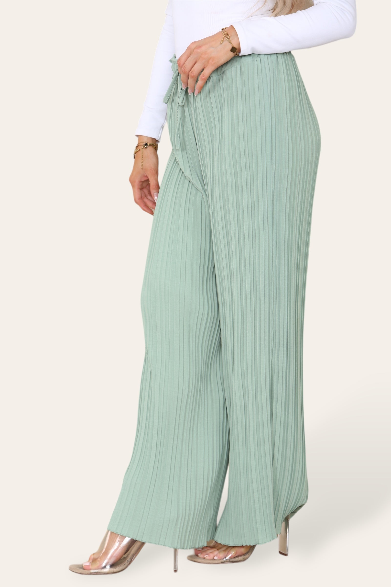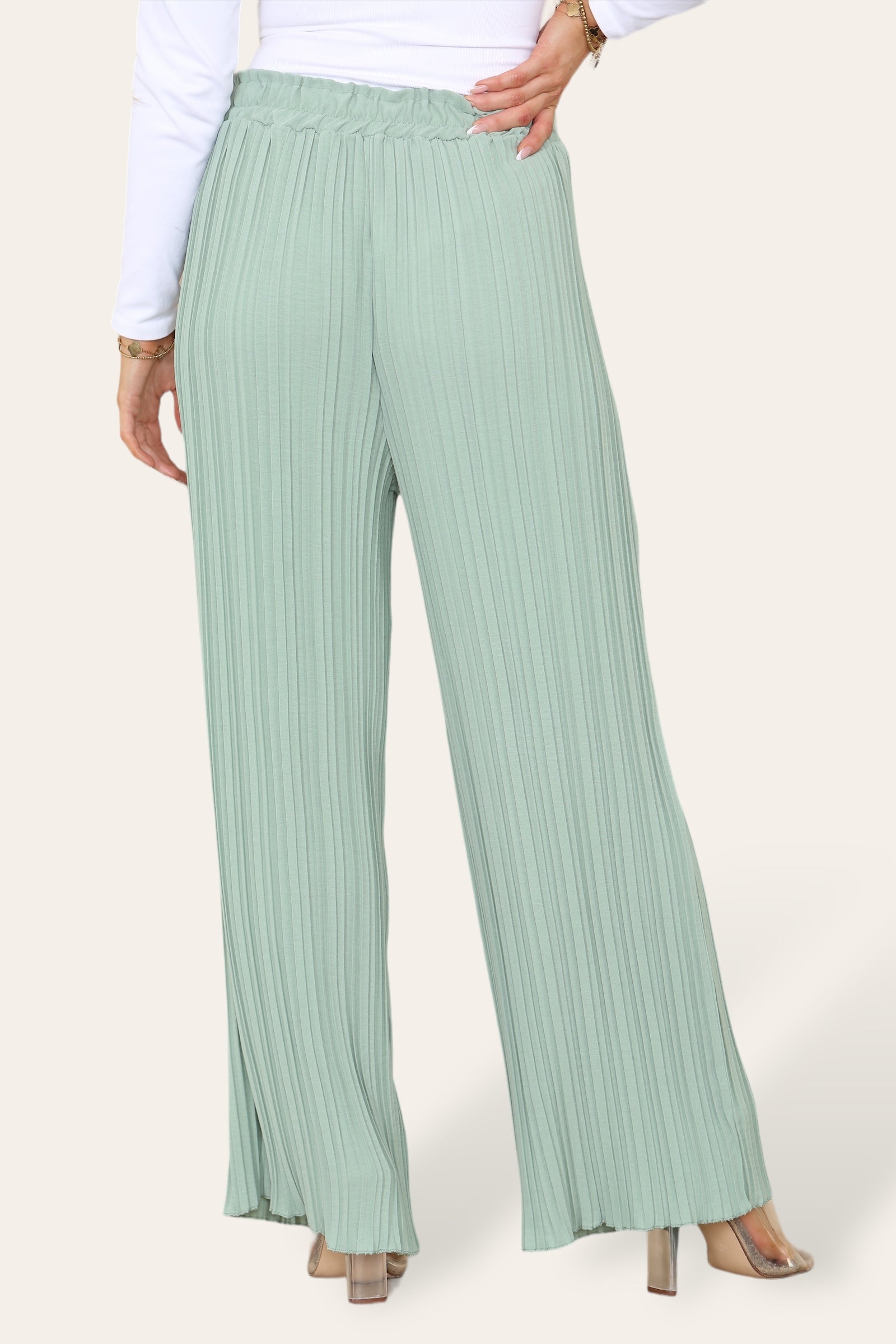 Wide Leg Plissé Pleated Trousers - Sage Green