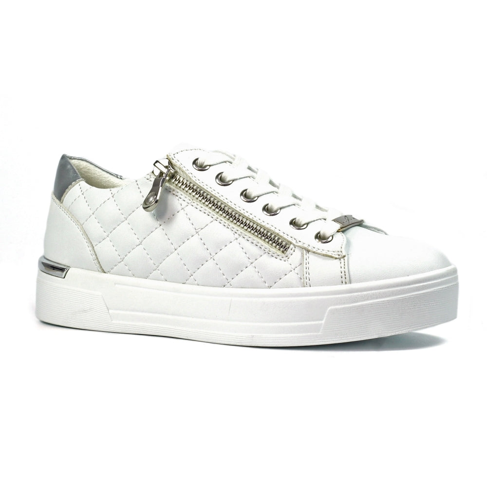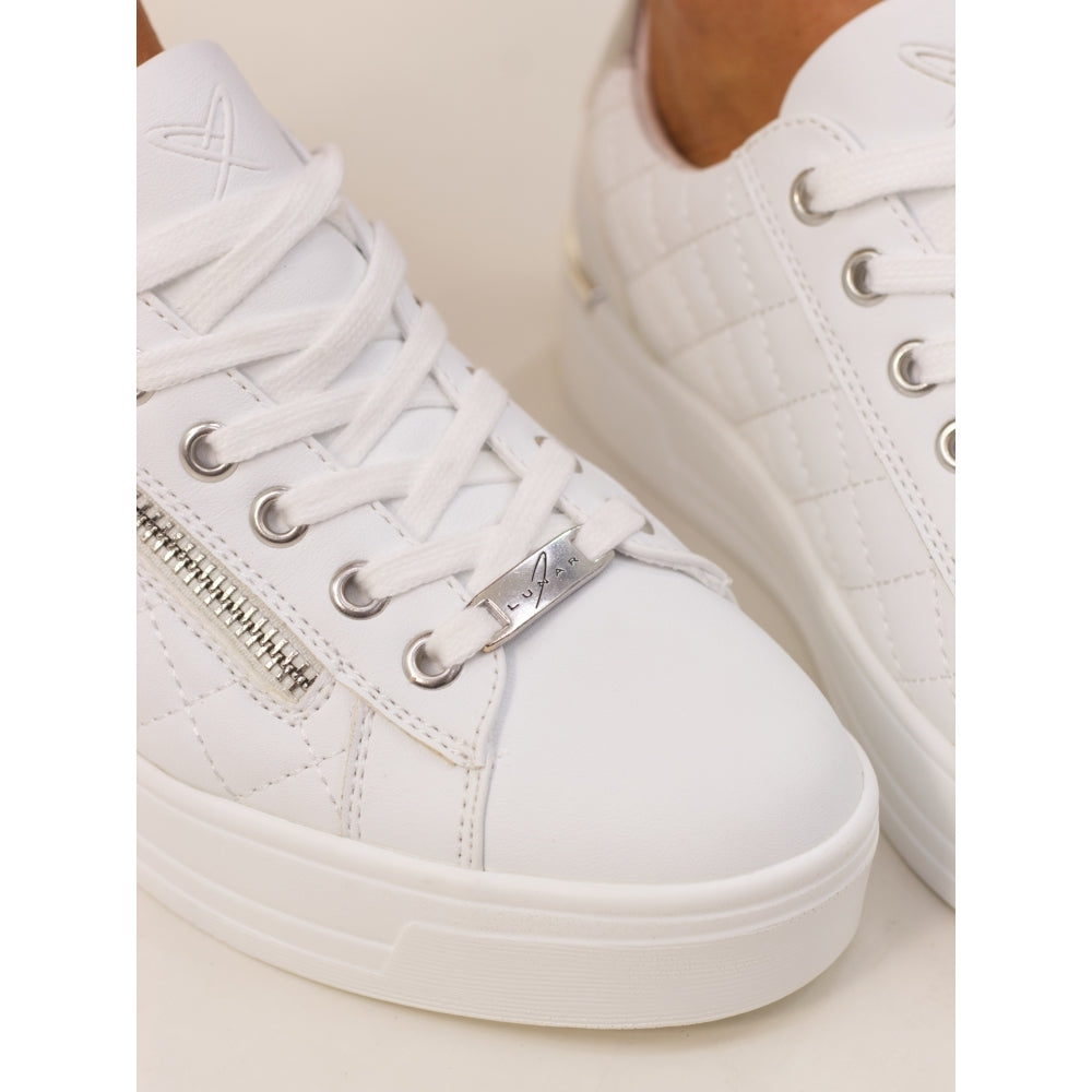 Indulge in laidback luxe with the Xenon trainer in white. This style features a captivating blend of metallic accents and comfortable design. The chunky sole allows for the perfect subtle lift while the padded insole offers day-long comfort. Embrace the fusion of elegance and support with these must-have trainers.